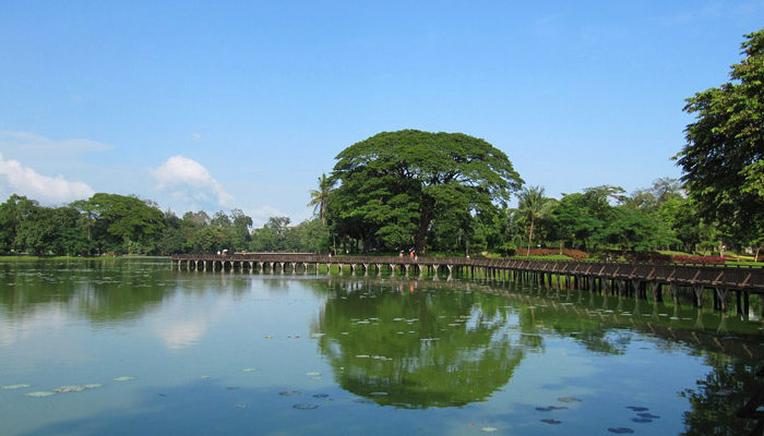 Kandawgyi Park, actually known as Kandawgyi Nature Park is a popular center for recreation in the capital of Yangon. Kandawgyi Lake, built by the British as a reservoir, is most attractive at sunset, when the glittering Shwedagon is reflected in its calm waters. The boardwalk, which runs mainly along the southern and western sides of the lake, is also an ideal place for an early-morning jog or stroll.