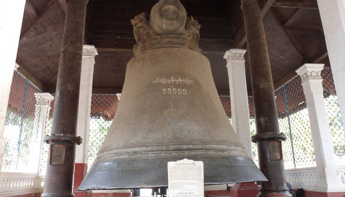 Mingun is best known for its gigantic, unfinished stupa, the Mingun Pahtodawgyi, which was meant to be the largest in the world (at a projected height of 150 metres), but now lies ravaged by earthquakes on the western banks of the Irrawaddy. 90-tonne Mingun Bell is with a diameter of almost 5 metres. A few minutes walk to the north of the bell can be found the Hsinbyume (Myatheindan) Pagoda, a white pagoda that is quite different in design and style from most pagodas in Myanmar. It is named after a princess who died in childbirth, and was built in 1816 and restored in 1874, after suffering earthquake damage.