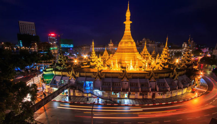 The Sule Paya is a small pagoda located in the center of Yangon. The pagoda, known in Burmese as the Kyaik Athok Zedi, is surrounded by busy streets, a market and colonial era buildings like the Supreme court building and Yangon city hall. According to legend the pagoda was built during the lifetime of the Gautama Buddha, about 2,500 years ago. The pagoda was much smaller at the time. It has been renovated and enlarged several times by later Kings. The paya reached its present height when it was renovated halfway the 15th century.